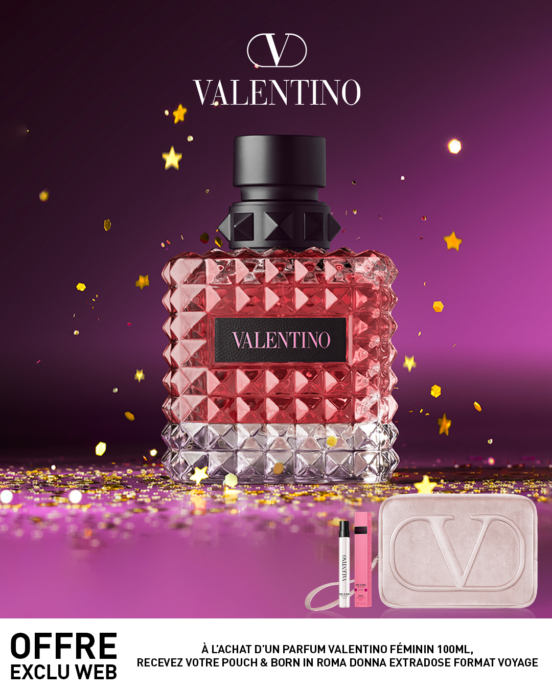 BORN IN ROMA DONNA est également proposé en vaporisateur de voyage 10 ml pour vous permettre d'emporter partout avec vous son esprit d'expression de soi.
